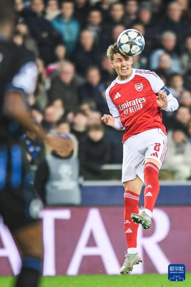 12月10日,阿森纳队球员厄德高在比赛中头球。记者 彭子洋 摄