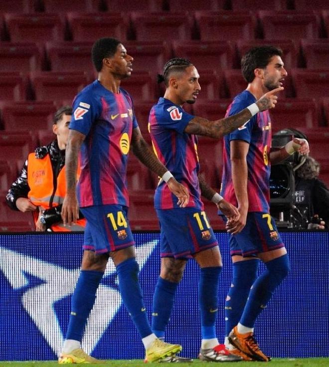 为了能够继续巩固自己西甲头名的位置,弗里克此役在主场沿用了4231的阵型,首发门将霍安加西亚,巴尔德、马丁、库巴西和孔德构筑后防,双后腰则是佩德里搭档加西亚,拉什福德、拉菲尼亚和亚马尔坐镇中场,单箭头则是费兰托雷斯。